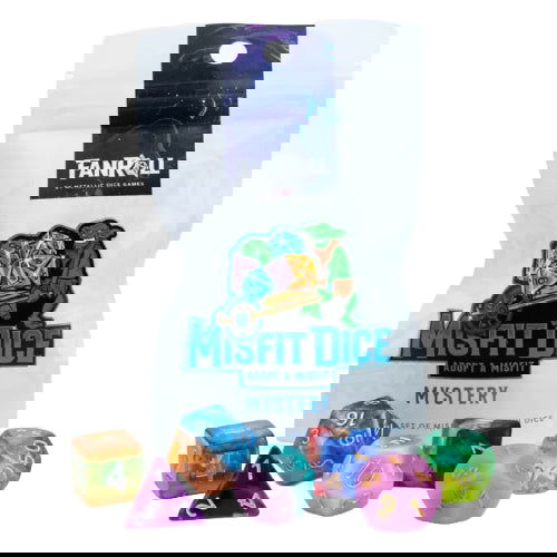 Now you can unwrap and adopt a full set of mixed dice and bring them home. These dice are one-of-a-kind including a mix of colors and effects. Includes a D4, D6, D8, D10, D%, D12 and D20, all different styles.